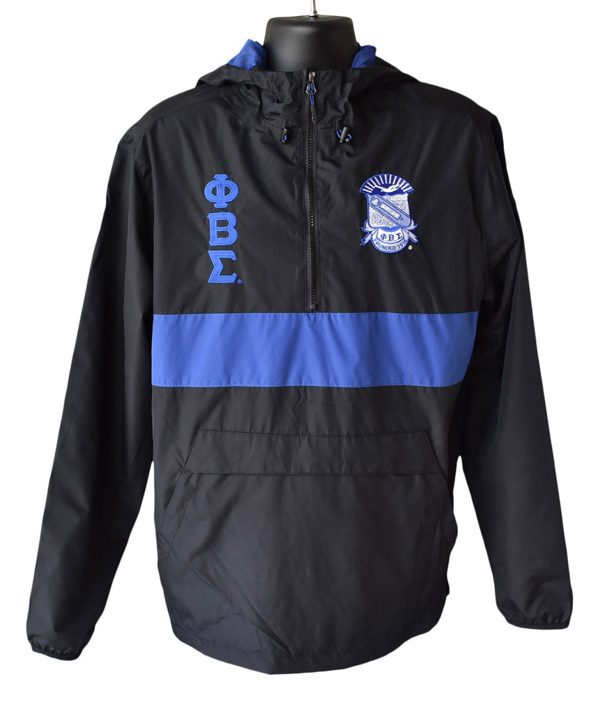 Our Phi Beta Sigma Stripe Anorak Jacket is a popular choice for beating the weather elements in style. Features uniquely-sized embroidered Greek letters and embroidered Shield to the left chest. The jacket has two pockets in one: the front pocket includes a top zippered pocket to secure valuables.