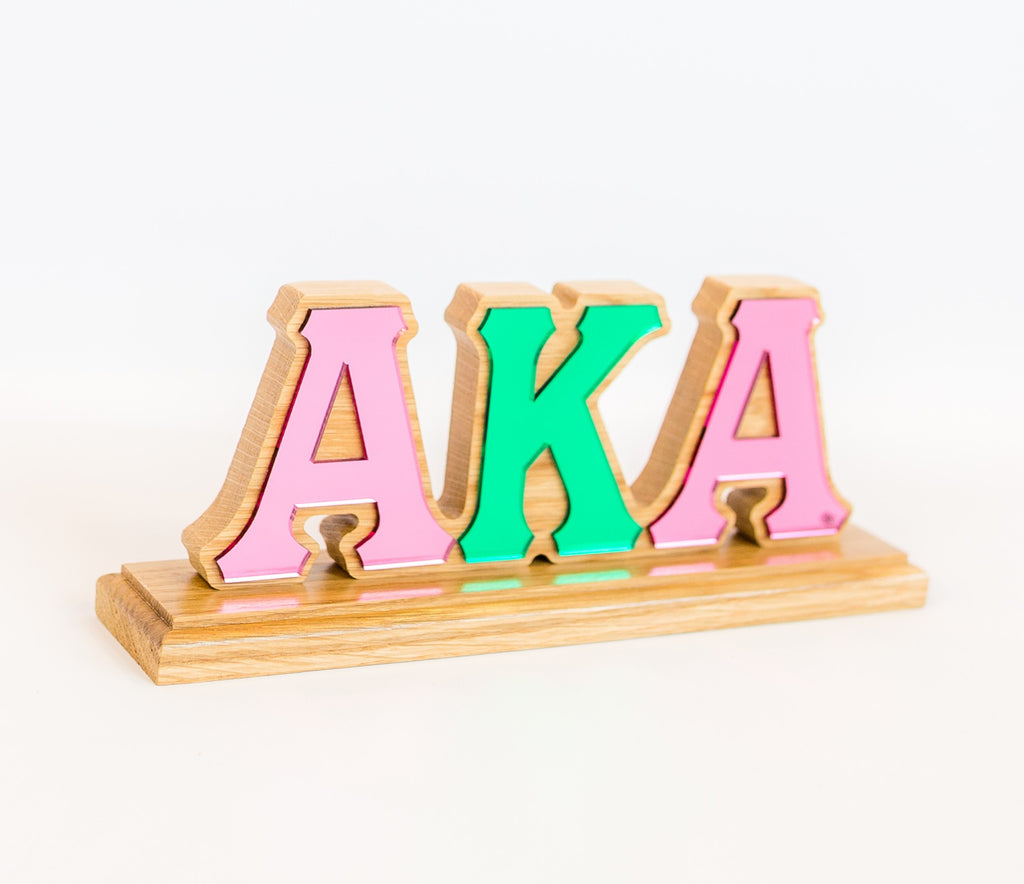 These AKA Desk Top Greek Letters are a great option for displaying your sorority pride at home or at the office, whether it be on a shelf, mantel, or desk. The solid, carved wooden base has a stained finish and features vibrantly-colored acrylic letters.. A piece that can be passed on to future generations!